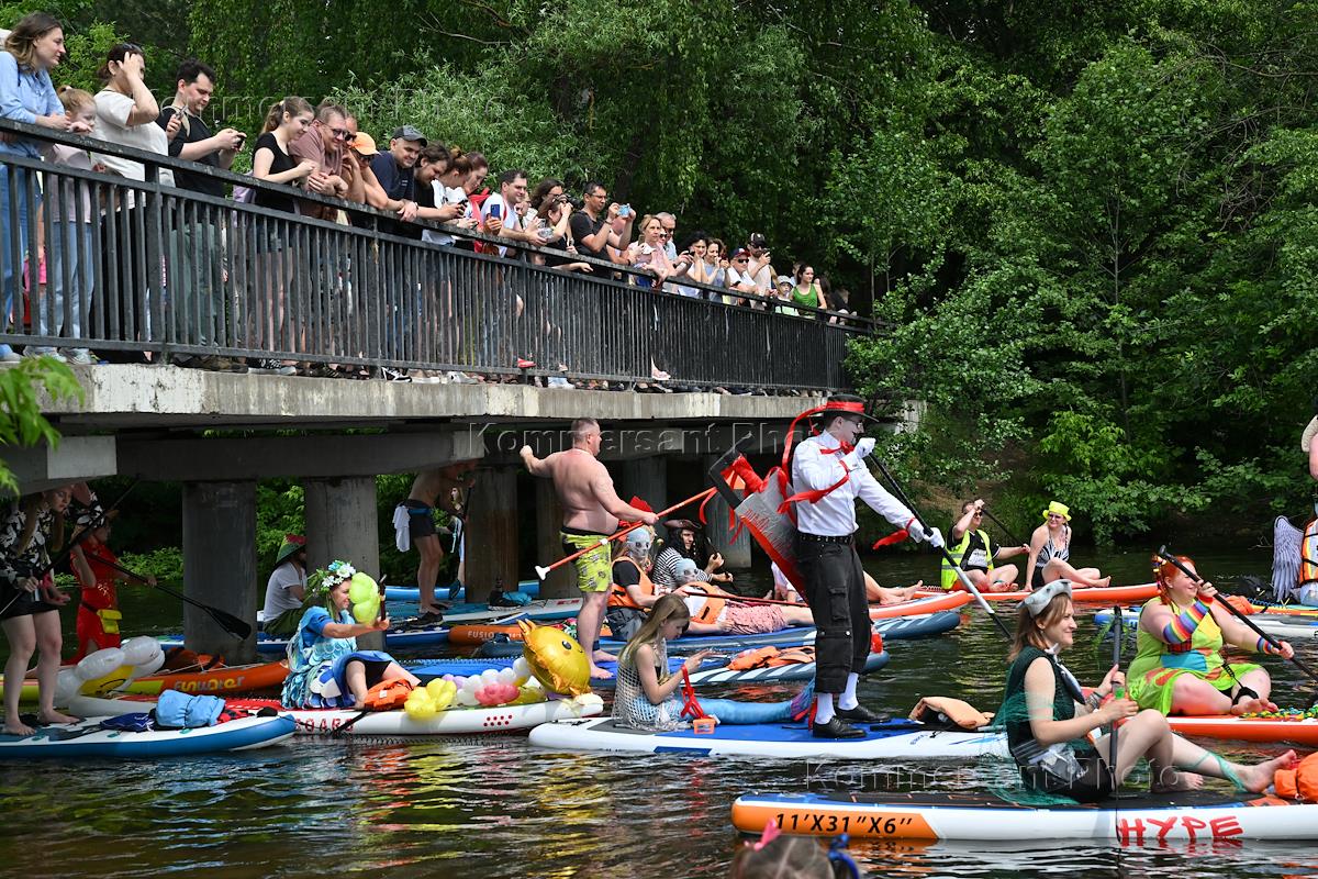 Костюмированная сап-регата в Серебряном бору. Участники и зрители во время регаты.