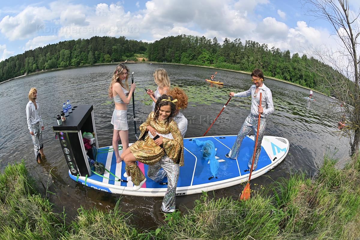 Костюмированная сап-регата в Серебряном бору. Участники перед началом регаты.