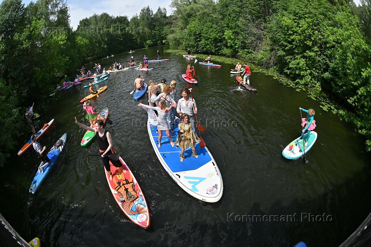 Костюмированная сап-регата в Серебряном бору. Участники во время регаты.