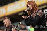 Winline Суперкубок России по футболу среди женских команд 2025. Финал. Матч между командами "Локомотив" (Москва) и "Зенит" (Санкт-Петербург) на стадионе "Екатеринбург Арена". Певица Юлия Савичева во время выступления перед началом матча.