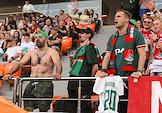 Winline Суперкубок России по футболу среди женских команд 2025. Финал. Матч между командами "Локомотив" (Москва) и "Зенит" (Санкт-Петербург) на стадионе "Екатеринбург Арена". Болельщики команды "Локомотив" на трибуне во время матча.