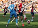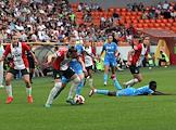 Winline Суперкубок России по футболу среди женских команд 2025. Финал. Матч между командами "Локомотив" (Москва) и "Зенит" (Санкт-Петербург) на стадионе "Екатеринбург Арена". Игрок команды "Локомотив" Алсу Абдуллина (в центре) и игрок команды "Зенит" Габриэла Гживиньска (слева) во время матча.