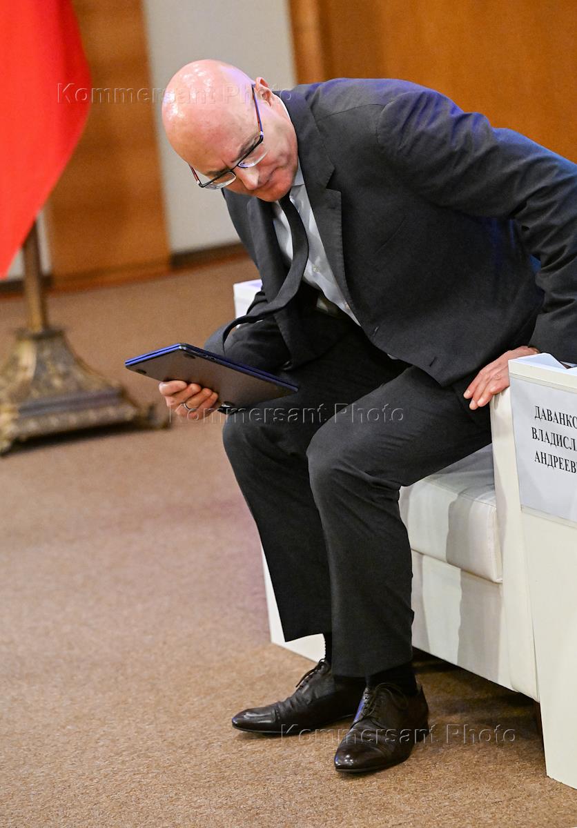 Заседание комитета по развитию гражданского общества, вопросам общественных и религиозных объединений в Государственной Думе (ГД) России. Заместитель председателя правительства России Дмитрий Чернышенко (в центре) перед началом заседания.