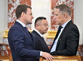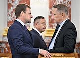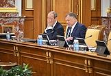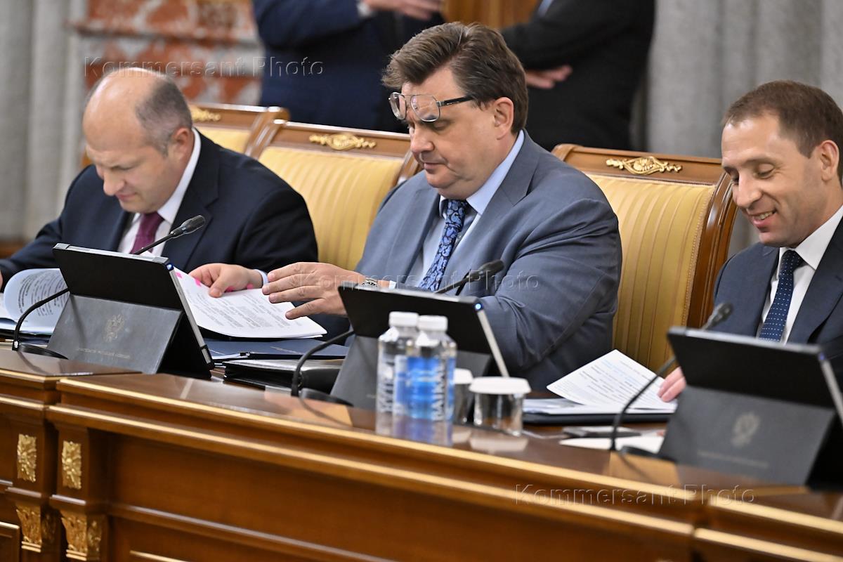Заседание правительства России. Справа налево: министр просвещения России Сергей Кравцов, министр транспорта России Роман Старовойт и заместитель председателя правительства России Виталий Савельев перед началом заседания.
