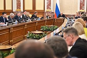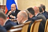 Заседание правительства России. Председатель правительства России Михаил Мишустин (в центре) во время заседания.