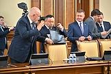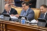 Заседание правительства России. Слева направо: министр России по делам гражданской обороны, чрезвычайным ситуациям и ликвидации последствий стихийных бедствий (МЧС) Александр Куренков, министр юстиции России Константин Чуйченко и министр природных ресурсов и экологии России Александр Козлов во время заседания.