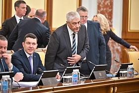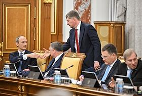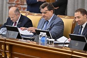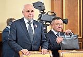 Заседание правительства России. Слева направо: министр России по развитию Дальнего Востока и Арктики Алексей Чекунков, министр строительства и жилищно-коммунального хозяйства России Ирек Файзуллин и министр здравоохранения России Михаил Мурашко перед началом заседании.