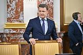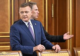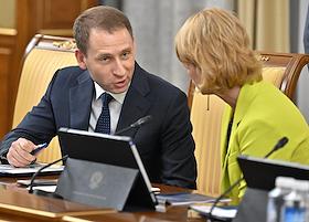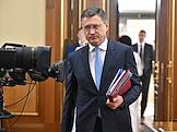 Заседание правительства России. Министр транспорта России Роман Старовойт перед началом заседании.