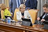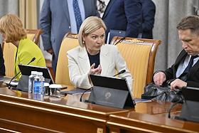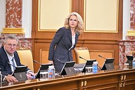 Заседание правительства России. Слева направо: министр сельского хозяйства России Оксана Лут, министр культуры России Ольга Любимова и министр здравоохранения России Михаил Мурашко во время заседания.
