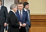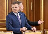 Заседание правительства России. Министр России по делам гражданской обороны, чрезвычайным ситуациям и ликвидации последствий стихийных бедствий (МЧС) Александр Куренков (в центре) перед началом заседания.