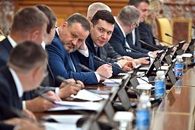 Заседание правительства России. Слева направо: министр энергетики России Сергей Цивилев, министр строительства и жилищно-коммунального хозяйства России Ирек Файзуллин, министр транспорта России Роман Старовойт, министр просвещения России Сергей Кравцов и министр природных ресурсов и экологии России Александр Козлов перед началом заседания.