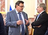 Заседание правительства России. Министр юстиции России Константин Чуйченко (слева) и заместитель председателя правительства России Виталий Савельев (справа) перед началом заседания.