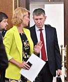 Заседание правительства России. Министр сельского хозяйства России Оксана Лут (слева) и министр экономического развития России Максим Решетников (справа) перед началом заседания.