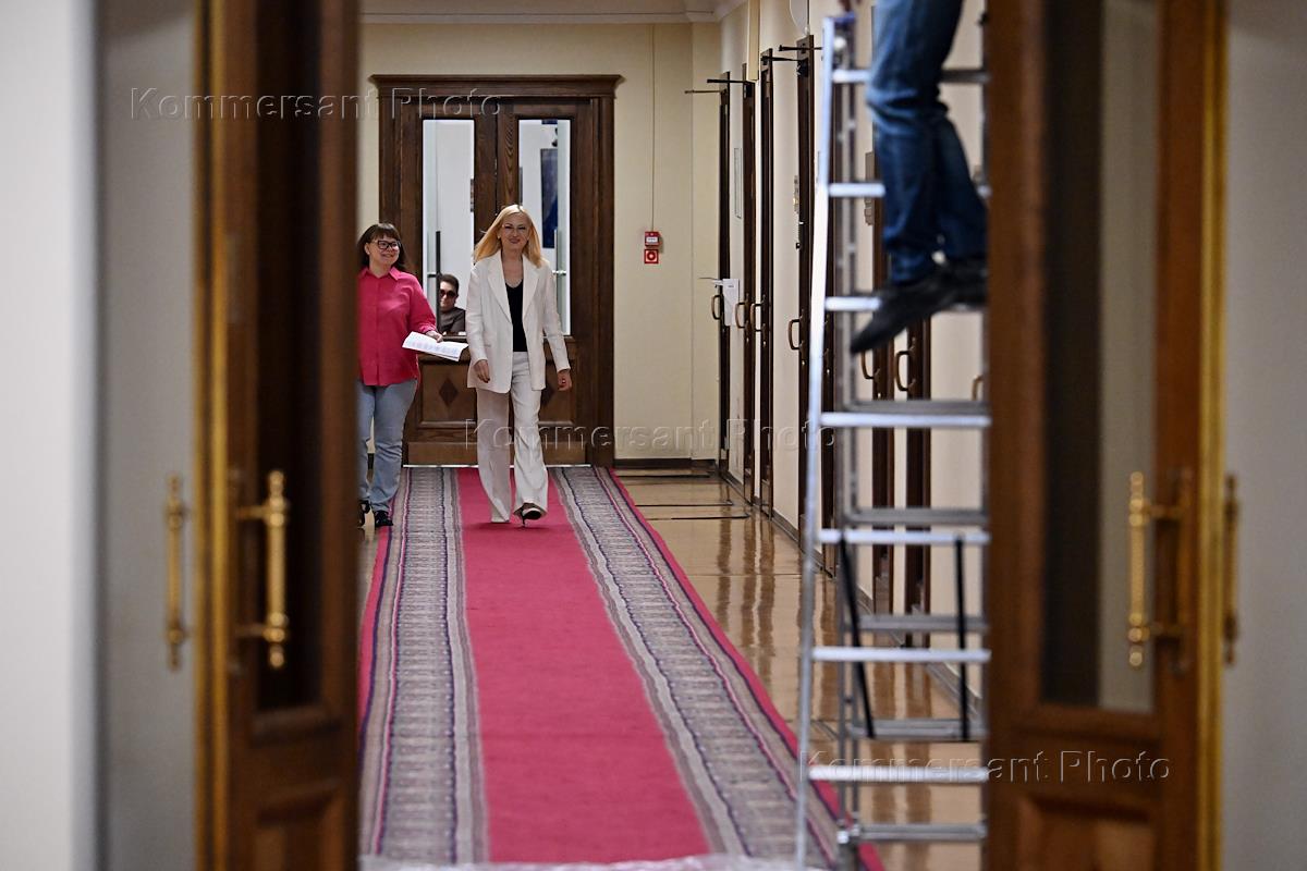 Пленарное заседание Государственной думы (ГД) России. Заместитель председателя ГД России Виктория Абрамченко (справа) перед началом заседания.