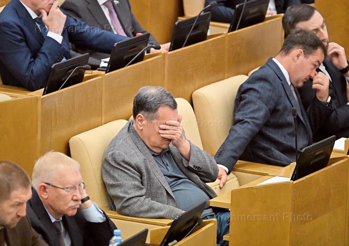 Пленарное заседание Государственной думы (ГД) России. Первый заместитель председателя комитета ГД России по труду, социальной политике и делам ветеранов Николай Коломейцев во время заседания.