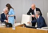 Пленарное заседание Государственной думы (ГД) России. Слева направо: руководитель фракции "Единая Россия" в ГД России Владимир Васильев, заместители председателя ГД России Анна Кузнецова, Александр Бабаков и председатель ГД России Вячеслав Володин во время заседания.