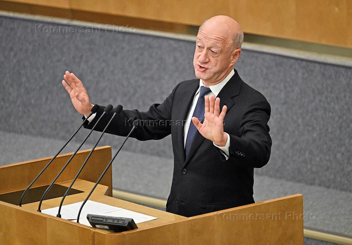Пленарное заседание Государственной думы (ГД) России. Статс-секретарь - заместитель министра внутренних дел России Игорь Зубов во время заседания.