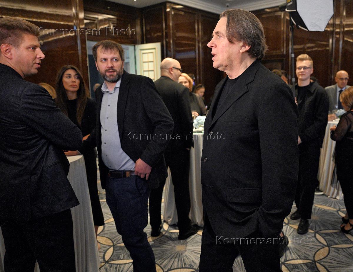 Церемония награждения победителей Всероссийского телевизионного конкурса "ТЭФИ" 2025 в номинациях категории "Сериалы" в Гостинице "Ритц-Карлтон". Генеральный директор телекомпании "Первый канал" Константин Эрнст (слева) и директор культурного центра-музея "Дом Высоцкого на Таганке" Никита Высоцкий (второй справа) на церемонии.
