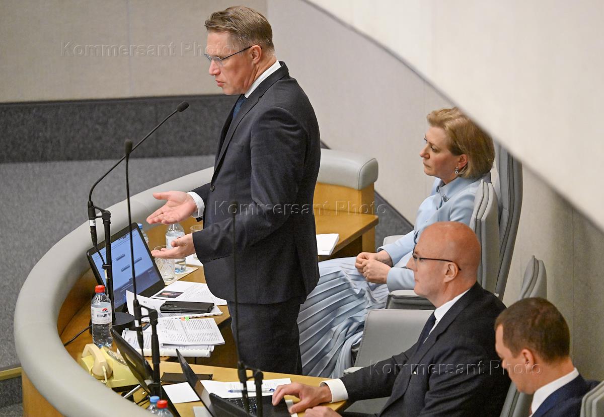 Пленарное заседание Государственной думы (ГД) России. Министр здравоохранения России Михаил Мурашко во время заседания.