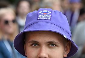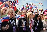 Торжественная церемония запуска часов обратного отсчета "100 дней до "Интервидения’25" на Манежной площади. Жанровая фотография. Игрушка Лабубу на сумке зрительницы церемонии.
