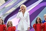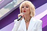 Торжественная церемония запуска часов обратного отсчета "100 дней до "Интервидения’25" на Манежной площади. Певица Валерия во время выступления на церемонии.
