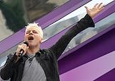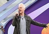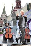 Торжественная церемония запуска часов обратного отсчета "100 дней до "Интервидения’25" на Манежной площади. Певец SHAMAN (Ярослав Дронов) (в центре) во время выступления на церемонии.