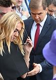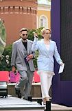 Торжественная церемония запуска часов обратного отсчета "100 дней до "Интервидения’25"" на Манежной площади. Специальный представитель президента России по международному культурному сотрудничеству Михаил Швыдкой (второй слева), продюсер Яна Рудковская (в центре) на церемонии.
