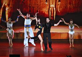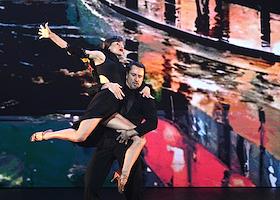Премьера пластического спектакля "Наваждение" в концертном зале "Москва" (парк "Остров мечты"). Художественный руководитель и продюсер спектакля тренер по художественной гимнастике Ирина Винер, режиссер - Зарина Мухитдинова. Гимнастка Ульяна Донскова (справа), Игорь Неведров (слева) на премьере.