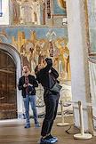 Мужской Ферапонтов Белозерский Богородице-Рождественский монастырь Вологодской епархии Русской православной церкви. Жанровая фотография. Туристы во время осмотра фресок древнерусского иконописца Дионисия.