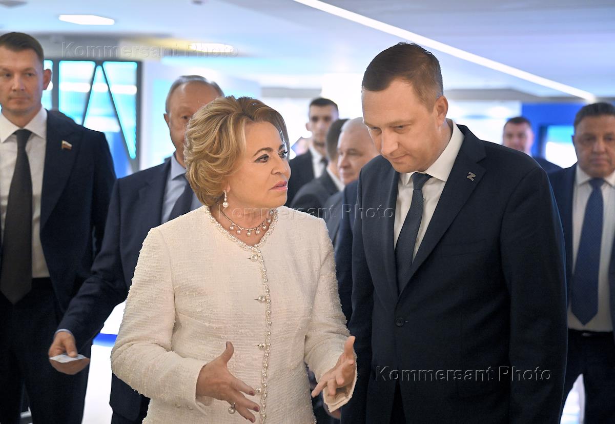 Days of Saratov Region in the Federation Council of Russia. Chairperson of the Federation Council of Russia Valentina Matvienko (left) and Governor of Saratov Region Roman Busargin (right) before the opening ceremony.