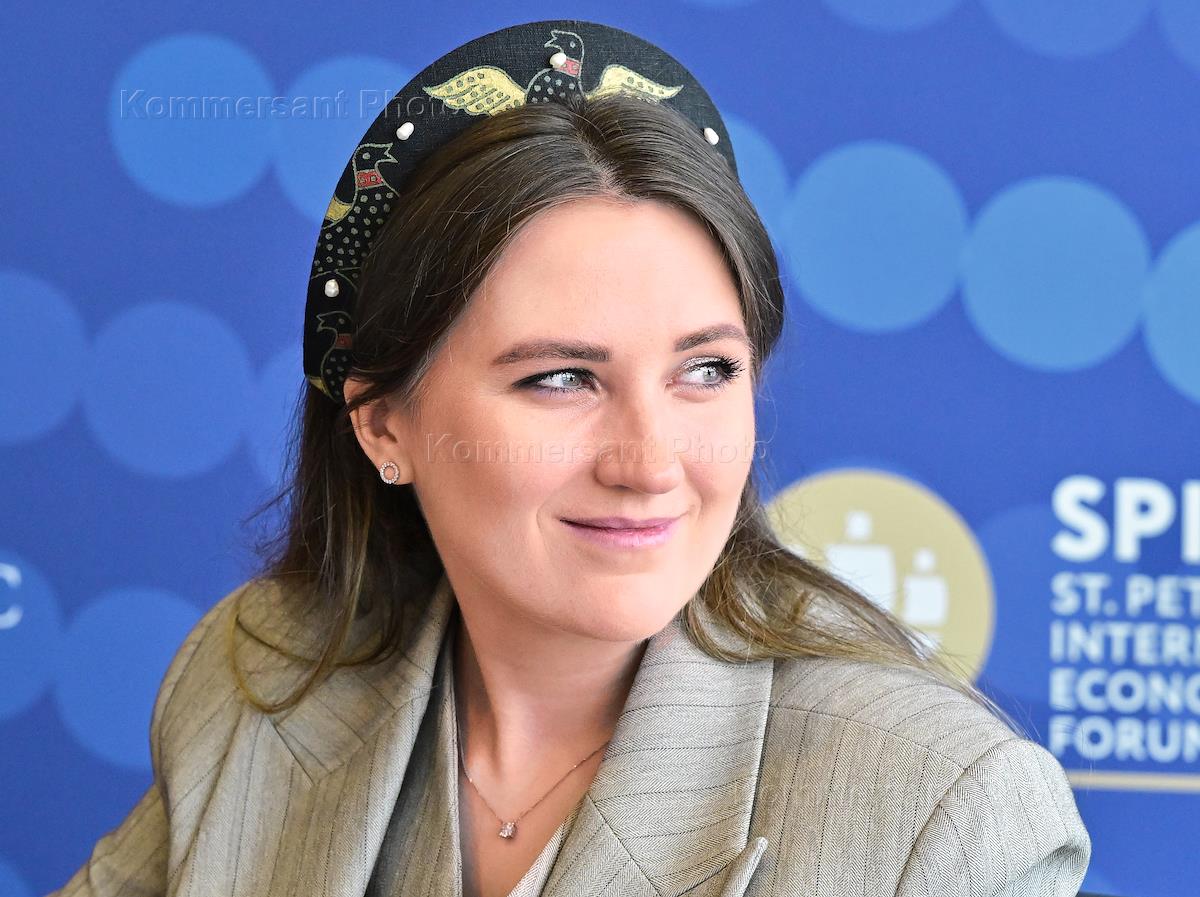 XXVIII Петербургский международный экономический форум (ПМЭФ) 2025 в конгрессно-выставочном центре "Экспофорум". Сессия: "Лишний вес – эпидемия наших дней: как переломить негативный тренд". Первый заместитель председателя комитета Государственной думы России по науке и высшему образованию Ксения Горячева на сессии.