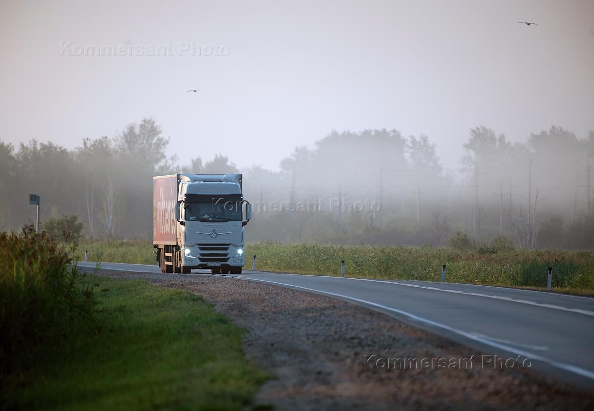 Genre photography. Truck on the Novosibirsk - Omsk highway.