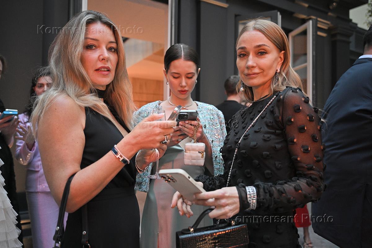 XXVIII St. Petersburg International Economic Forum (SPIEF) 2025. Reception of the Moskvichka magazine at the Cheval court residence. From left to right: head of the Open New Democracy Foundation Kristina Potupchik, entrepreneur and co-founder of the Friends charity foundation Yan Yanovsky and editor-in-chief of the Moskvichka magazine Darina Alekseeva at the reception.