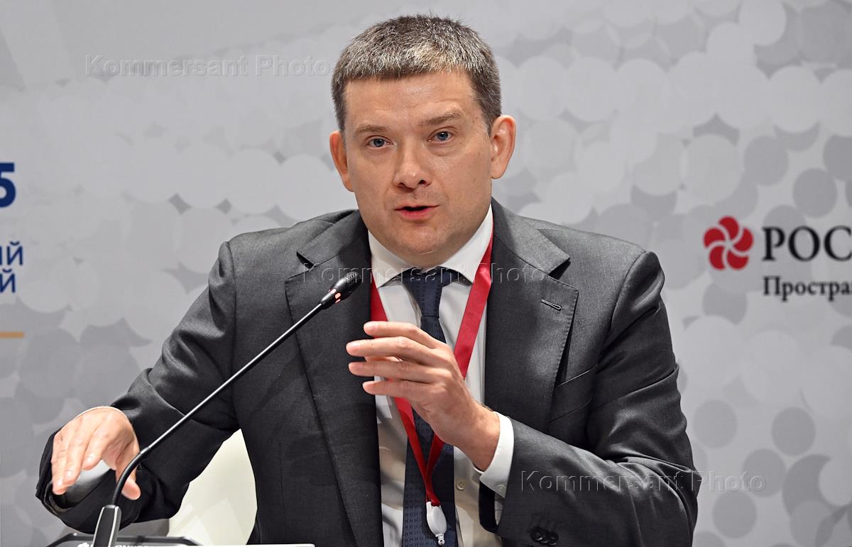 XXVIII St. Petersburg International Economic Forum (SPIEF) 2025 at the ExpoForum Convention and Exhibition Centre. Session "Dual-use technologies and the future of global leadership". State Secretary – Deputy Minister of Industry and Trade of the Russian Federation Viktor Yevtukhov during the session.