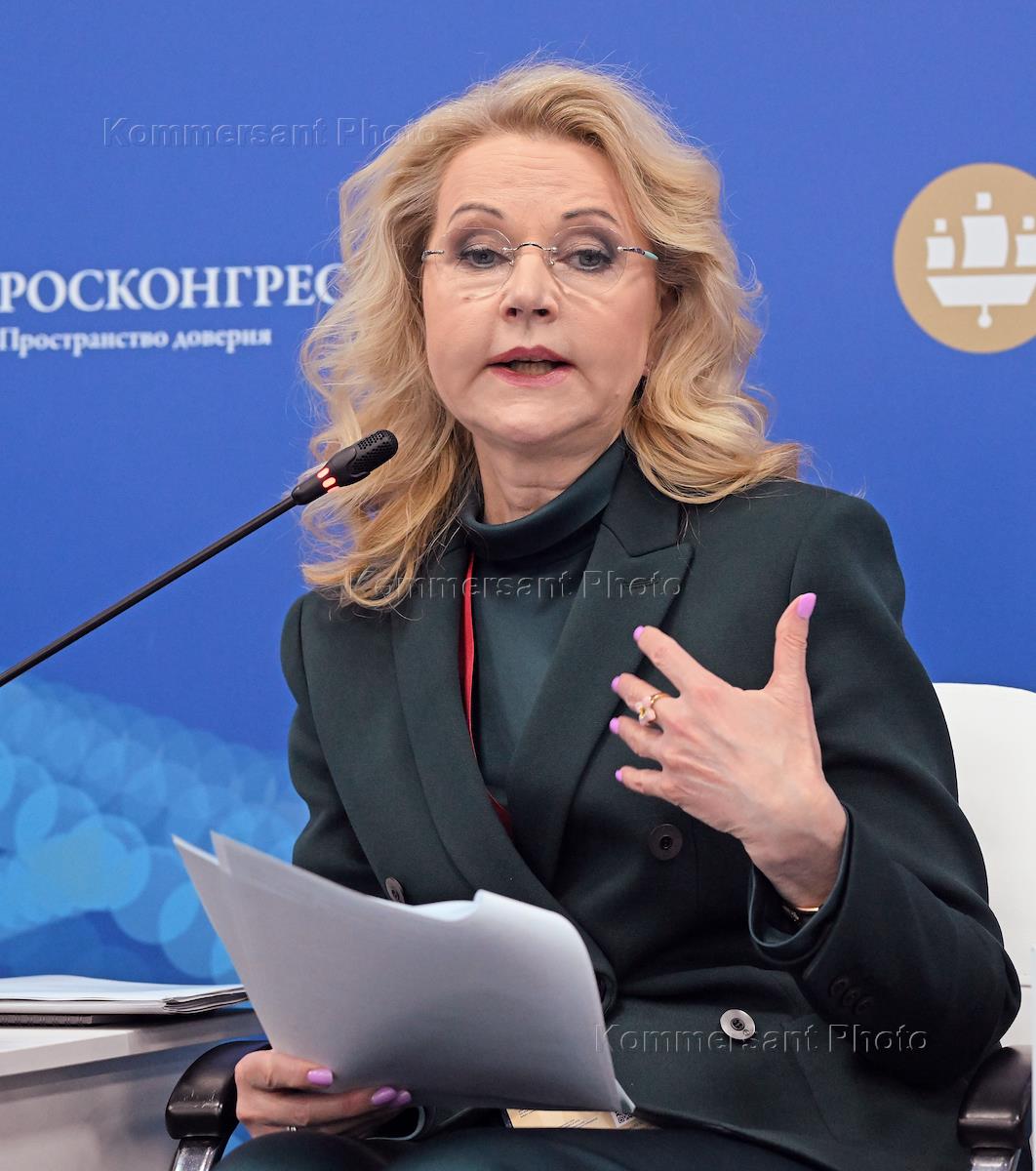 XXVIII St. Petersburg International Economic Forum (SPIEF) 2025 at the ExpoForum Convention and Exhibition Centre. Session "Healthy Longevity Without Compromises". Deputy Prime Minister of the Russian Federation Tatyana Golikova at the session.