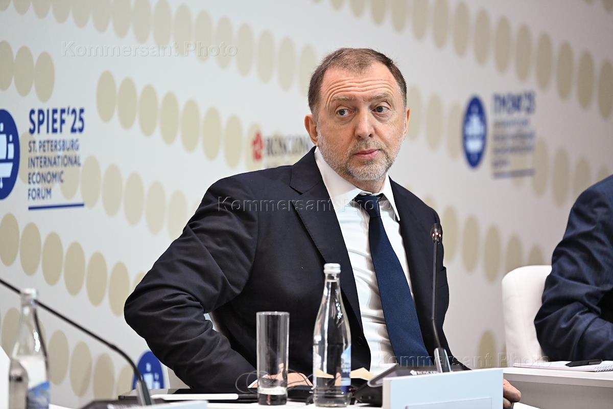 XXVIII St. Petersburg International Economic Forum (SPIEF) 2025 at the ExpoForum Convention and Exhibition Centre. Session "In Search of New Sources of Growth: Is a Different Model of Global Financial and Trade Architecture Possible?" Founder of En+Group, Chairman of the Supervisory Board of the Stolypin Institute for Growth Economics Oleg Deripaska at the session.