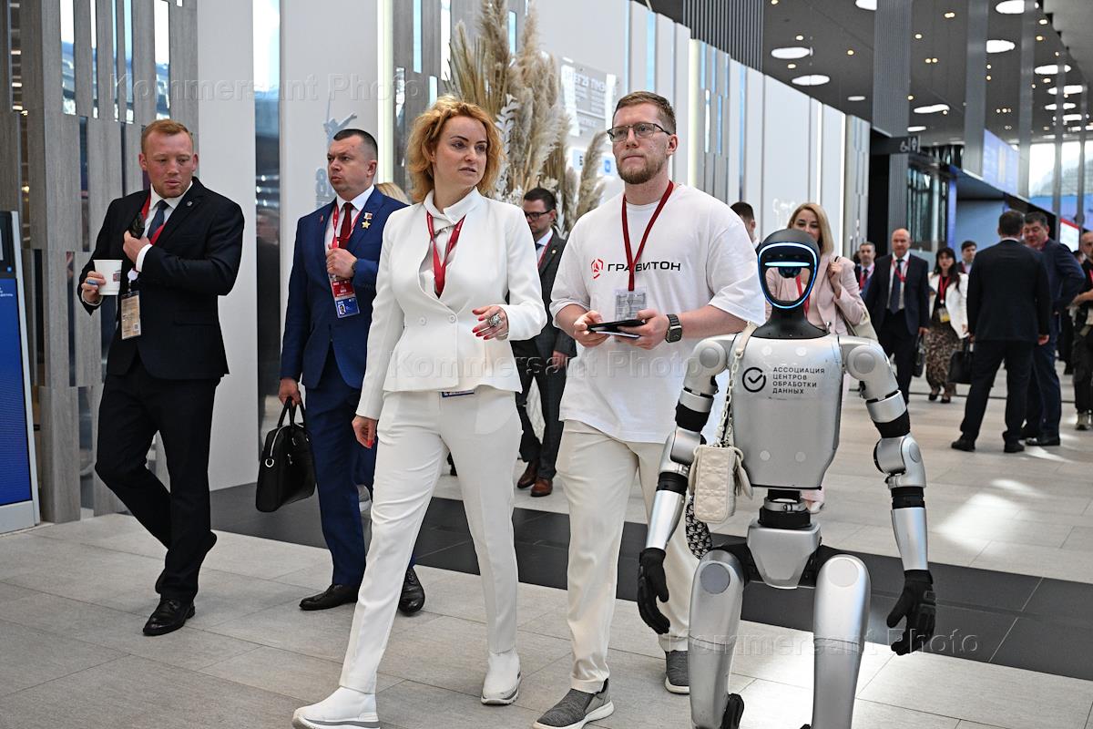 XXVIII Петербургский международный экономический форум (ПМЭФ) 2025 в конгрессно-выставочном центре "Экспофорум". Жанровая фотография. Робот "Володя" — разработка Ассоциации центров обработки данных (Ассоциации ЦОД).