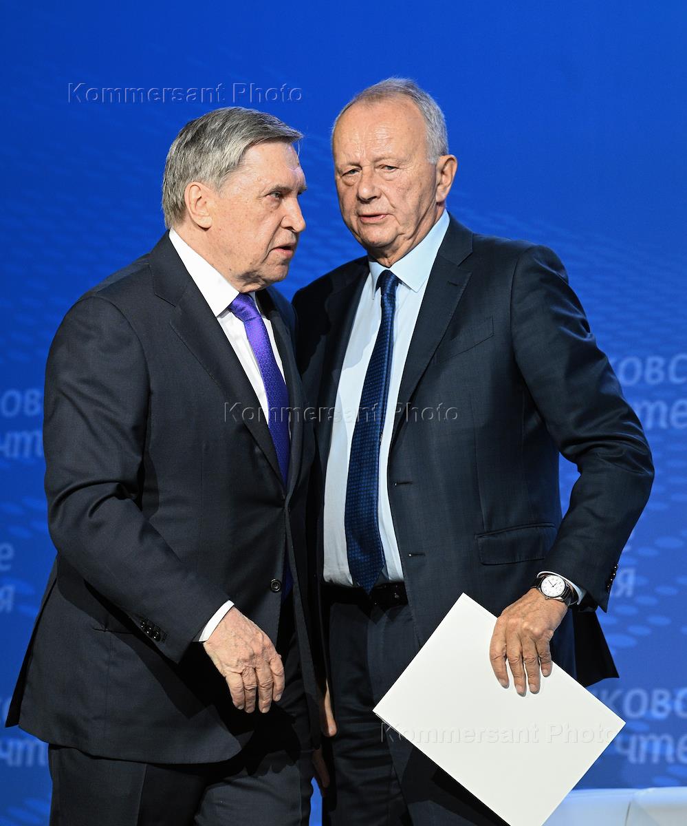The 11th International Scientific and Expert Forum "Primakov Readings" at the Radisson Blu Leninsky Prospect Hotel. Aide to the President of Russia Yuri Ushakov (left) and Director of the Institute of Laser and Information Technologies of the Russian Academy of Sciences Vladislav Panchenko (right) at the forum.