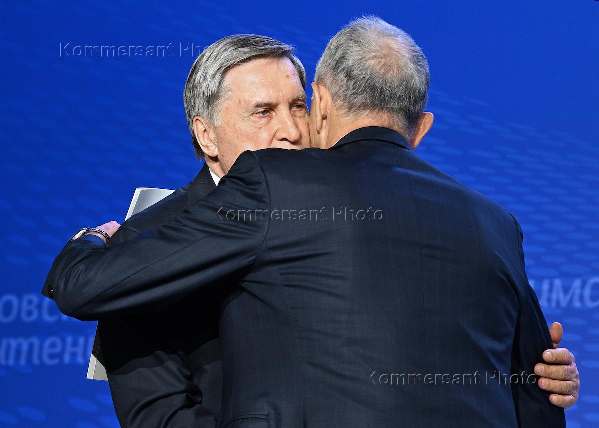 XI международный научно-экспертный форум "Примаковские чтения" в Radisson Blu Leninsky Prospect Hotel. Сессия "Большая Евразия – пространство ответственного развития". Ректор МГИМО Анатолий Торкунов (слева) и директор Института Дальнего Востока РАН Алексей Маслов (справа) на сессии.