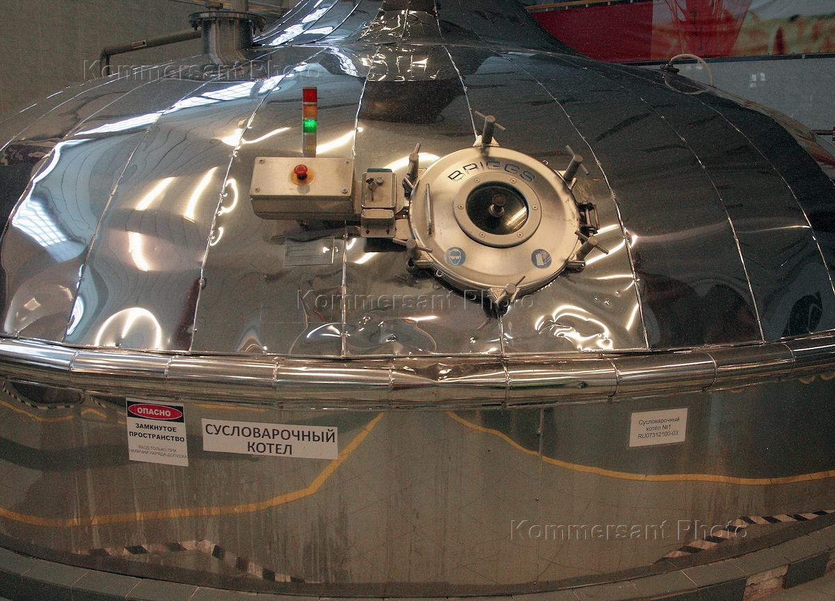 The territory of the brewery of AB InBev Efes. The mash kettle in the workshop of the plant.
