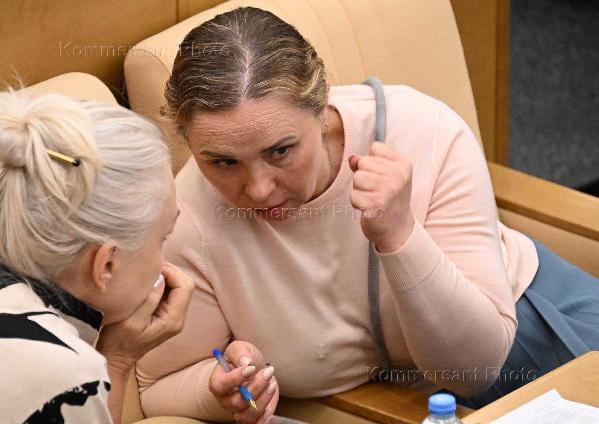 Пленарное заседание Государственной думы (ГД) России. Председатель комитета ГД России по защите семьи, вопросам отцовства, материнства и детства Нина Останина (слева) во время заседания.