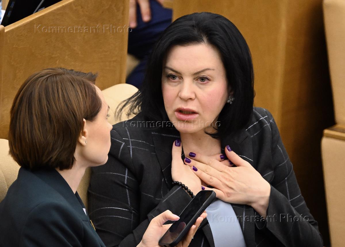 Пленарное заседание Государственной думы (ГД) России. Председатель комитета ГД России по защите семьи, вопросам отцовства, материнства и детства Нина Останина (слева) во время заседания.