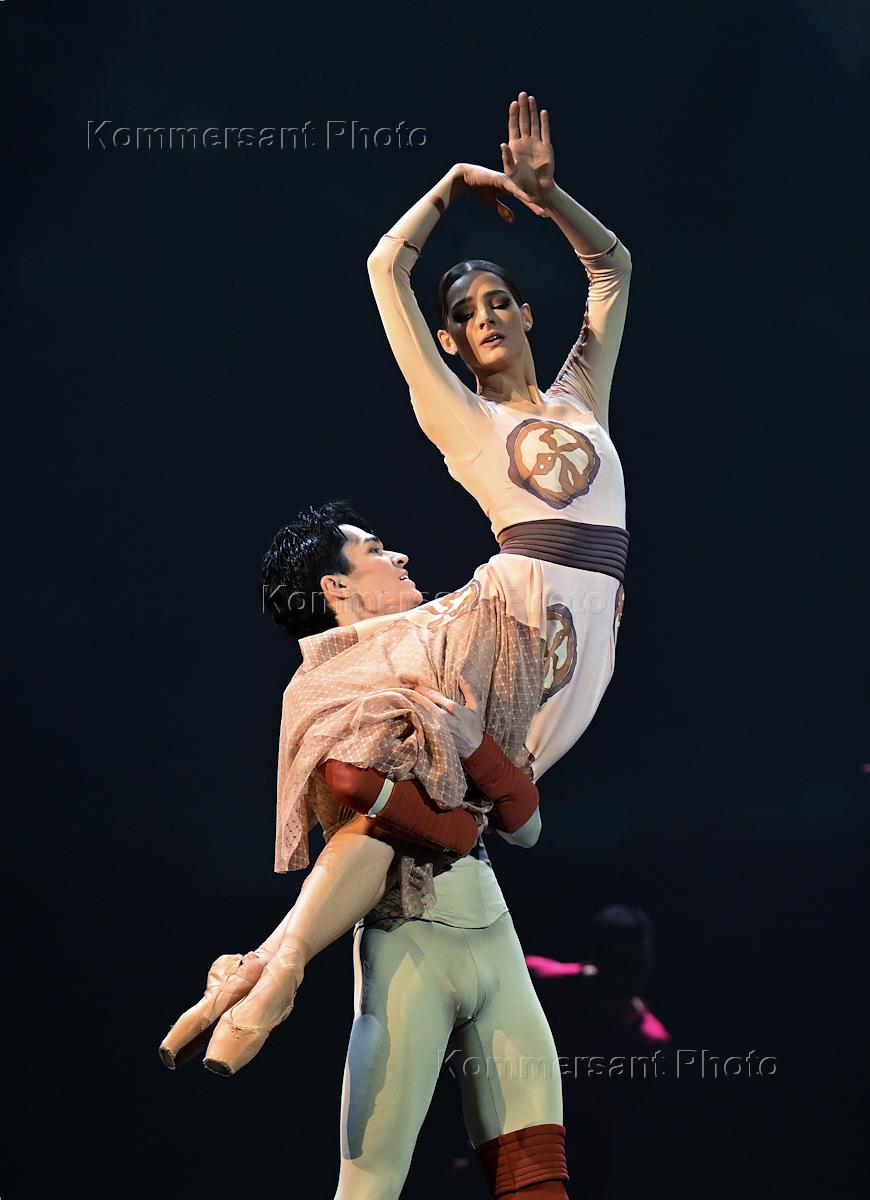 Генеральная репетиция балета "Дягилев" на Новой сцене Государственного академического Большого Театра. Артисты балета Анастасия Меськова (слева) и Денис Родькин (справа) во время репетиции.
