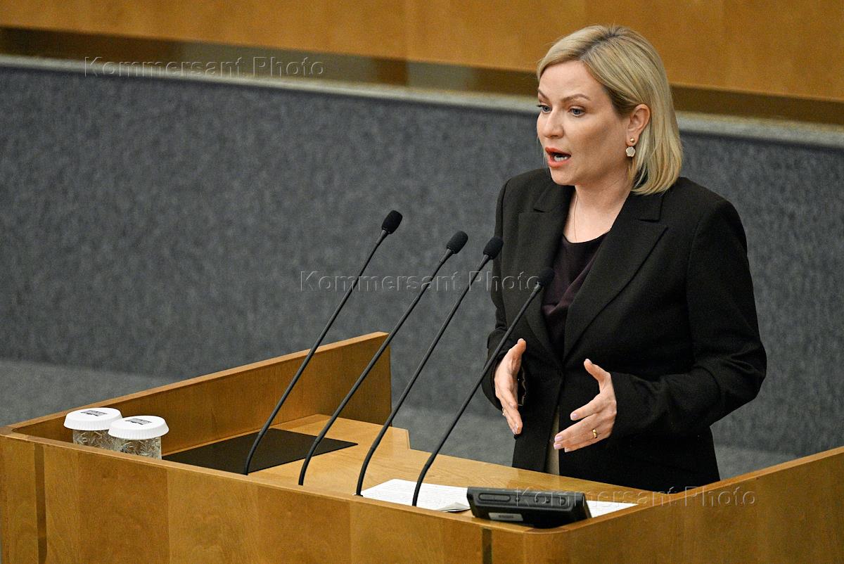 Пленарное заседание Государственной думы (ГД) России. Министр культуры России Ольга Любимова во время выступления на заседании.