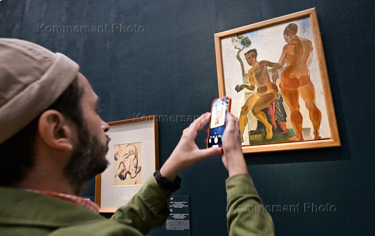 Церемония открытия выставки "Александр Дейнека. Гимн жизни" в Третьяковской галерее на Кадашевской набережной. Посетители на выставке.