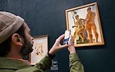 Церемония открытия выставки "Александр Дейнека. Гимн жизни" в Третьяковской галерее на Кадашевской набережной. Посетители на выставке.