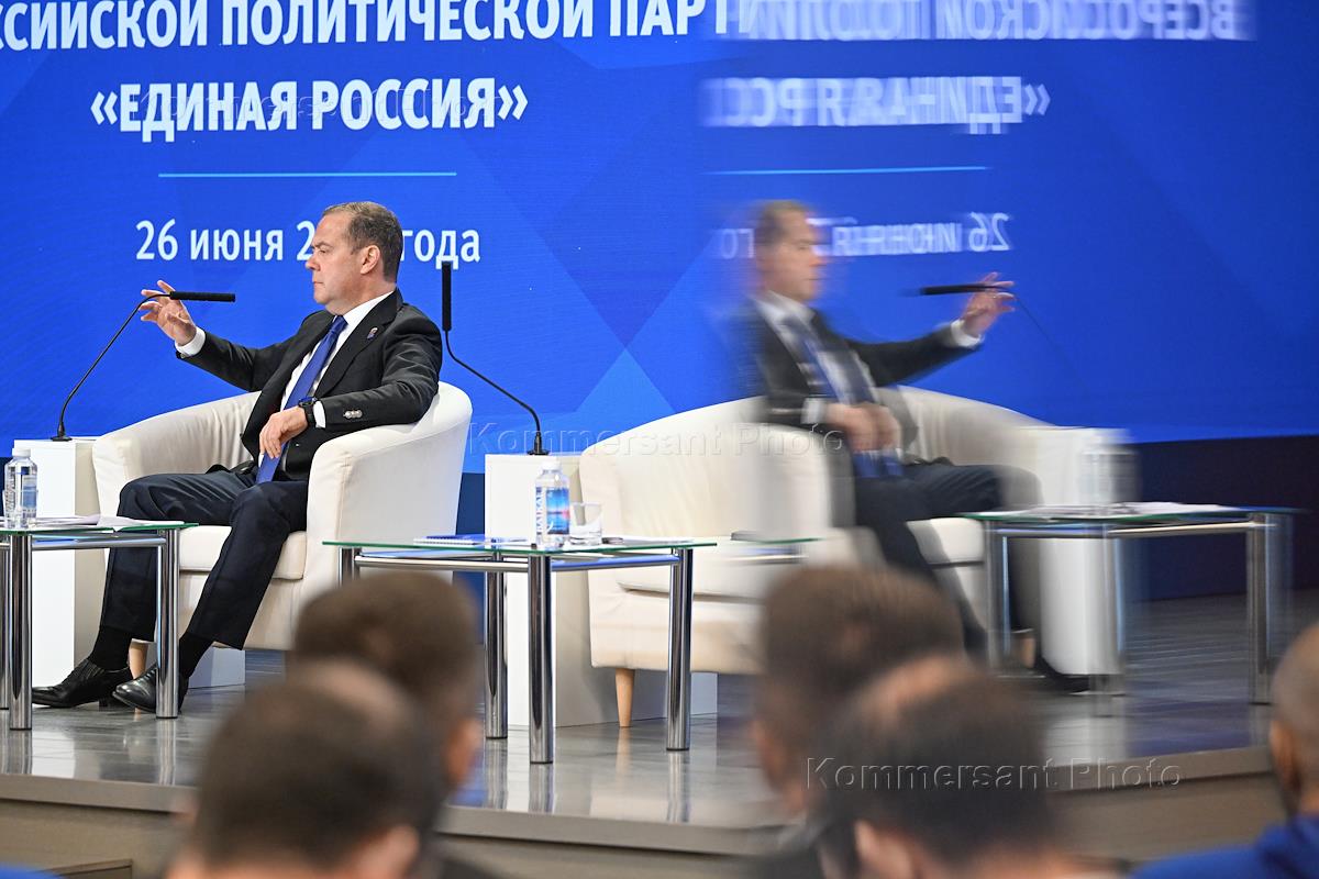 Заседание Генерального совета партии "Единая Россия" в Центральном Исполкоме партии. Заместитель председателя Совета безопасности России, председатель партии "Единая Россия" Дмитрий Медведев во время заседания.