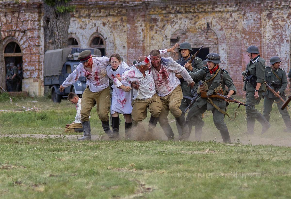 XIV Международный военно-исторический слет-реконструкция обороны "22 июня 1941 года. Брестская крепость". Участники слета во время инсценировки последнего мирного дня - 21 июня.
