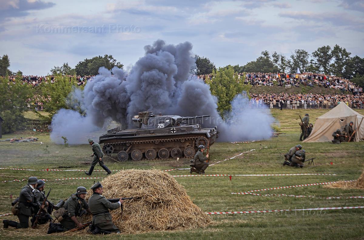 XIV Международный военно-исторический слет-реконструкция обороны "22 июня 1941 года. Брестская крепость". Участники слета во время реконструкции эпизодов обороны Брестской крепости.
