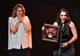 ХХХI Торжественная церемония вручения Российской национальной театральной премии "Золотая Маска" за лучшие спектакли сезона 2023-2024 в Татарском государственном академическом театре имени Галиасгара Камала. Главный режиссер Красноярского музыкального театра Джемма Аветисян (справа) на церемонии.